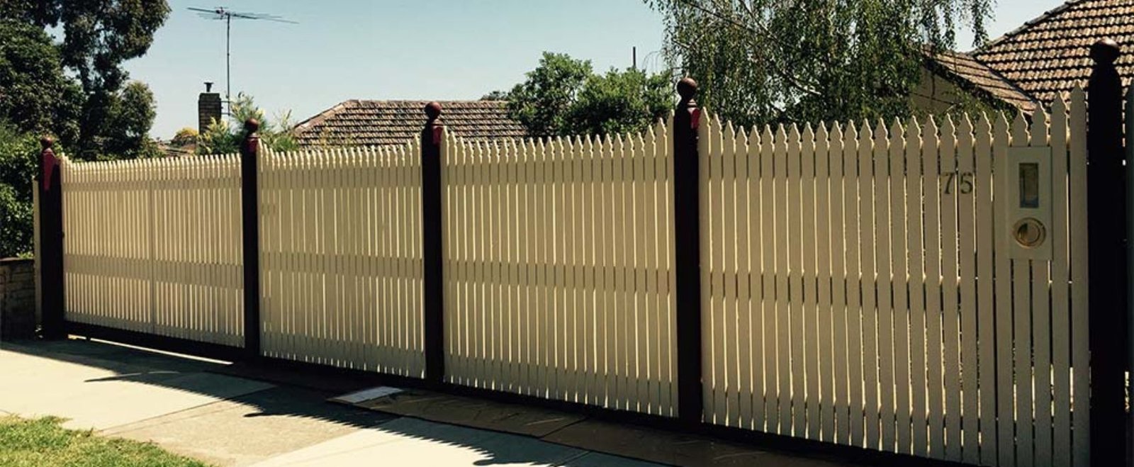 Picket fences and gates also add character when used to edge your driveway or side of house (as a fixed wing), and their usually pointy nature deters animals and children from leaving the security of your yard. Talk to us today about your ideal picket fence design. We’ll even help you design it – and we’ll be sure to give you a FREE Quote.